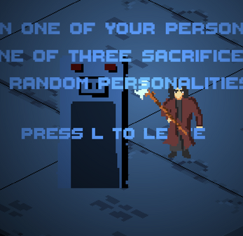 To survive, you must borrow power from your fractured personalities at ancient Statues. Every choice follows the law of Equivalent Exchange: